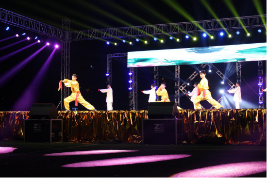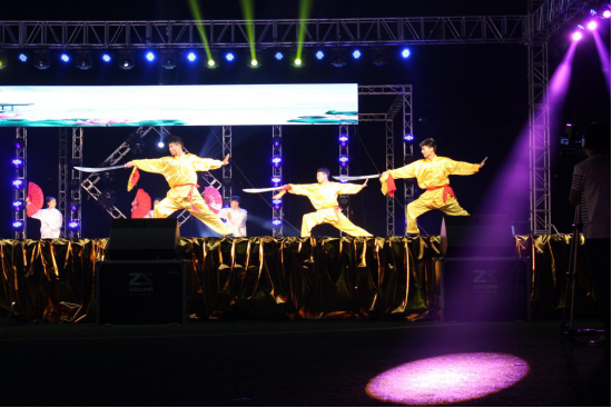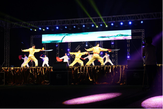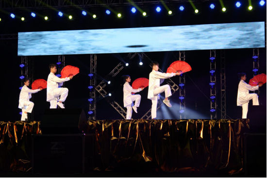 场面十分激情高昂丰富多彩。期间由体育系武术专选班全体师生在经过每日坚持训练,指导老师闫金兰、李冰、刘华精心的指导下,向同学们展示了我们体育系人的朝气蓬勃、奋发向上精神面貌。此次演出充分的体现出中华武术的博大精深,吸引了许多新生来关注武术,从而更进一步的学习武术,发扬武术精神。这次演出的成功举办凝结了体育系武术专选班老师的悉心指导、员工的辛勤付出和真情奉献。这顿丰盛的精神大餐,不仅陶冶情操、鼓舞士气、增进友谊、和谐关系,同时也激励大家不断健康成长、走向成熟。最后晚会在激情的音乐下完美谢幕。