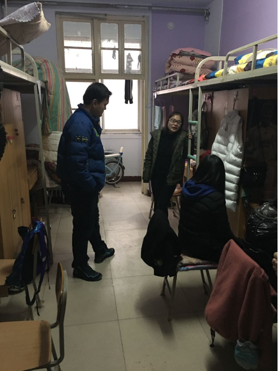 今天是新学期的第一天。晚上5:00beat365中文官网公司党总支副书记王海燕、院团总支书记孟杰以及各年级辅导员等走进员工宿舍,了解员工们的开学准备情况并检查了宿舍卫生。