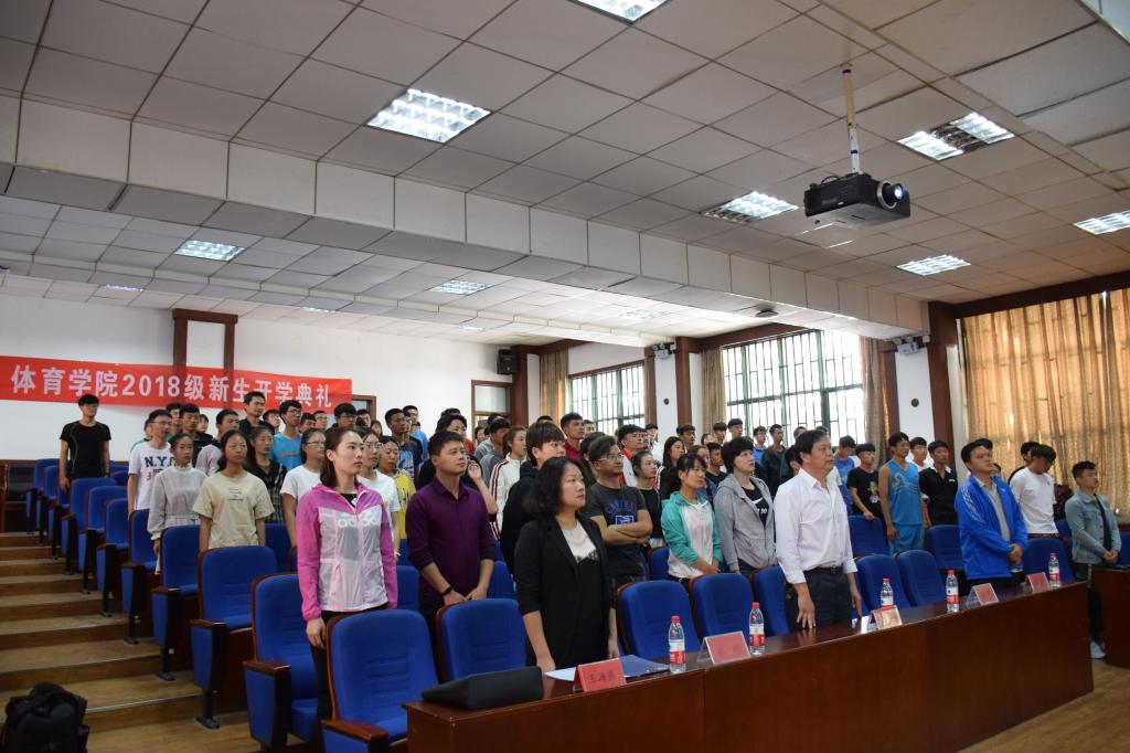 开学典礼在庄严的国歌声中开始。党总支书记江灏老师向2016级新生的到来表示了热烈的欢迎,殷切希望同学们求真务实、开拓创新,不要辜负家人与老师的殷切期望,好好学习,奋发向上,健康成长为一名心灵纯洁、人格健全、品德高尚的人,努力做一个有文化修养、有人文关怀、有责任担当的高素质体育人才。随后由老生代表王猛同学、2018级新生代表黄靖喻同学进行发言。