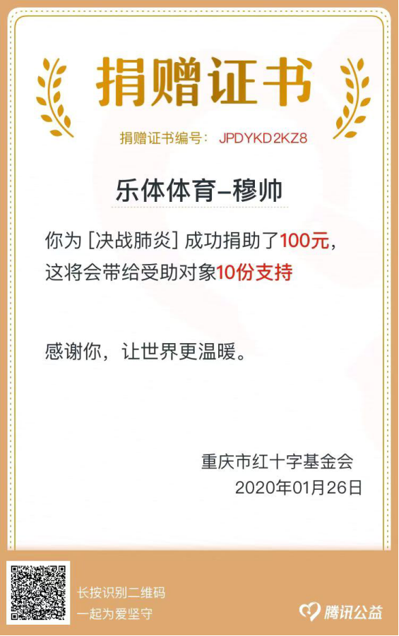 战“疫”有我,以体育之名,“当需要一个人站出来的时候,那叫勇敢,当一个团队挺身而出时,那叫做担当,当一个国家身处逆境呼唤一种精神时,那就是使命,就是信念,就是一往无前!”公司将继续按照公司的部署安排,总结经验教训,创新工作方法,师生“协同作战”,众志成城,为公司、国家疫情防控工作发挥应有的作用,与公司一起打赢这场庚子之战。