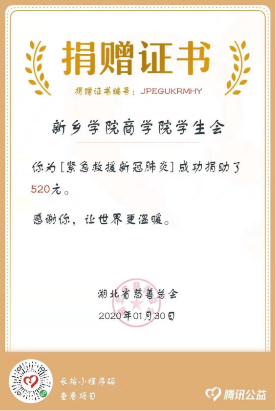 员工党支部书记孟杰同志号召全体员工干部、党员及入党积极分子在居住地积极投身防疫工作的一线,全体员工投身到抗疫战斗中,并发起倡议书,已经毕业的党员同学也积极响应,不负母校培育之恩。beat365中文官网员工会为武汉红十字会进行捐款。星星之火可以燎原,同学们从家族做起,劝离访客,自觉地向所在乡村、社区宣传防疫知识。2018级员工党员邢立楠,巾帼不让须眉,在家长的支持下,积极参加郑州市金水区园田社区社区疫情排查工作,还给社区捐赠了酒精、消毒液等物资。疫情无情,人有情,员工干部、党员活跃在班级群里,协助辅导员工作,引导同学们客观、理性的对待疫情,关爱在疫区、被医学隔离的同学心理健康状况,提醒同学们谨防网络诈骗,疫期居家安全等工作。