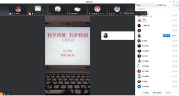 为深入学习贯彻习近平总书记关于新冠肺炎疫情防控重要指示批示精神,贯彻落实教育部、全省教育系统疫情防控工作会议精神、市教育系统新冠肺炎疫情防控工作专班工作提醒以及公司《关于开展“科学防疫,共护校园”员工专题学习和知识竞赛的通知》的通知要求,10月24日晚,beat365中文官网分年级通过线上形式,召开了“科学防疫 共护校园”主题班会。