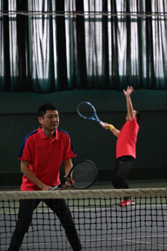 公司派出由经理李永刚、副经理杨卫华带队,王军朝、李龙江、王思源、王洋洋4名网球教师参加男子双打项目的比赛队伍。