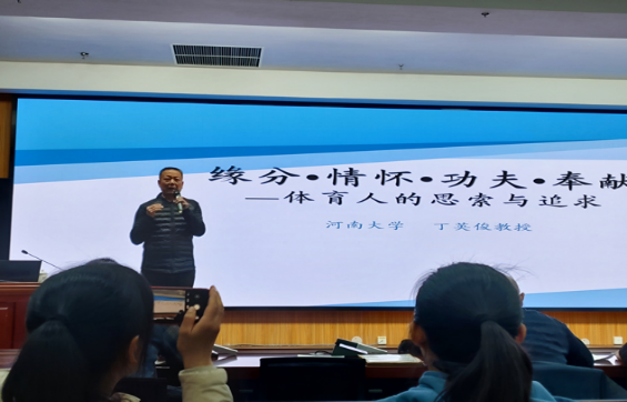 为加强公司公共体育工作的顺利开展,充分发挥体育综合育人功能,阐述体育专业学科价值,推动青年学子文化学习和技能学习协同发展。12月22日下午,beat365中文官网有幸邀请到河南大学著名体育教育专家丁英俊教授,在行政楼报告厅为师生们进行了一场主题为《缘分·情怀·功夫·奉献——体育人的思索与追求》的精彩讲座。