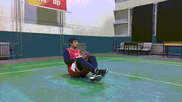动作要领:抬起双腿,保持双腿的稳定,上半身向后微倾,然后收缩腹部肌肉,两腿交替摆动,同时将球从胯下连续交接球。