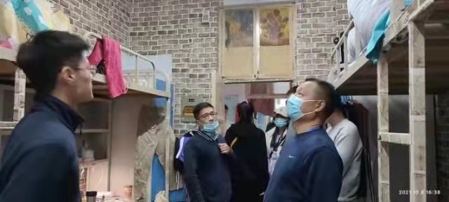 10月8日下午四点公司党总支书记张启中、党总支副书记张武强带领beat365中文官网学工办主任冯毛弟、beat365中文官网团委书记聂鸣琨及各年级辅导员展开对beat365中文官网员工宿舍的第一次检查。并督促同学们合理摆放物品,整理好寝室卫生,确保用电安全。确保员工住的好住的安全。