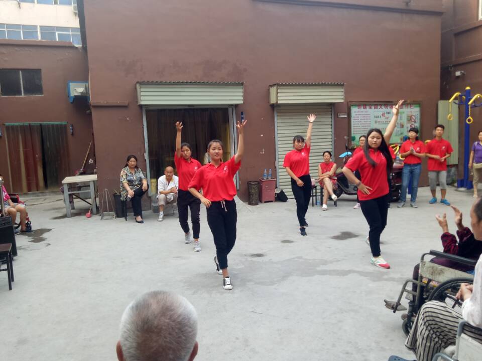 beat365中文官网“体育艺术文化普及服务社会实践团”师生顶着烈日骄阳,汗流浃背,来到了位于新乡市卫滨区的好家老年护理院。当闫金兰老师与团员们手提礼物迈进护理院的第一步时,老师与每一位团员不禁心酸与感叹,关爱之情难以抑制。在老师的号召下,团员们赶紧收拾心情,投入到服务孤残、老人的活动中。我们的师生用善意的笑容与关切的话语与孤残老人们很快就融洽的亲如一家,同学们为老人们打扫房间,准备演出场地道具,为老人们准备了各式水果。一切准备就绪,师生同台为老人们带去了许多精彩的表演,唱歌、朗诵、武术、舞蹈等节目,每一位老人都看的哈哈大笑,其中有位老爷爷兴致高涨,也为大家引吭高歌。晚饭时,同学们一勺勺、一口口喂那些不能自理的老人吃饭,像小时候,奶奶给自己喂饭时的样子,护理员的负责人不禁在一旁抹着眼泪。活动时,闫金兰老师根据自己多年的武术研究,为护理院的工作人员讲解了一些养生知识与技法,以便他们在照顾老人时使用。最后,闫老师总结了此次活动的感想与意义,并提出尊老爱幼是中华民族传统美德,是体育精神传承的体现,希望同学们今后要做个善良、勇敢、诚实的人,能够关爱孤残老人,有社会担当,少年强,民族强!