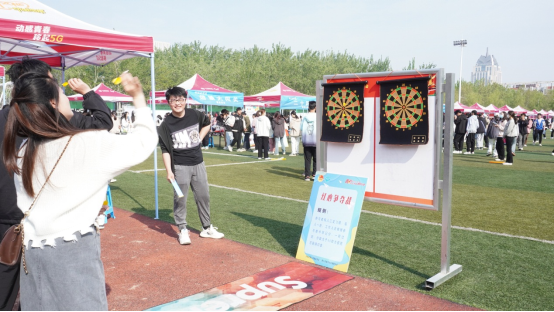 在员工社团展示现场,飞镖协会的“红心争夺战”受到了同学们高度喜欢,场地上排起了长长的队伍。参赛现场选手们沉着稳定,眼睛紧盯飞镖盘,投掷姿势标准帅气,大家纷纷为选手们喝彩,现场氛围热情高涨。本次比赛既提高了员工们的健身意识,又进一步增强了社团的凝聚力,也让同学们在比赛中感受到了勇于挑战的体育精神!