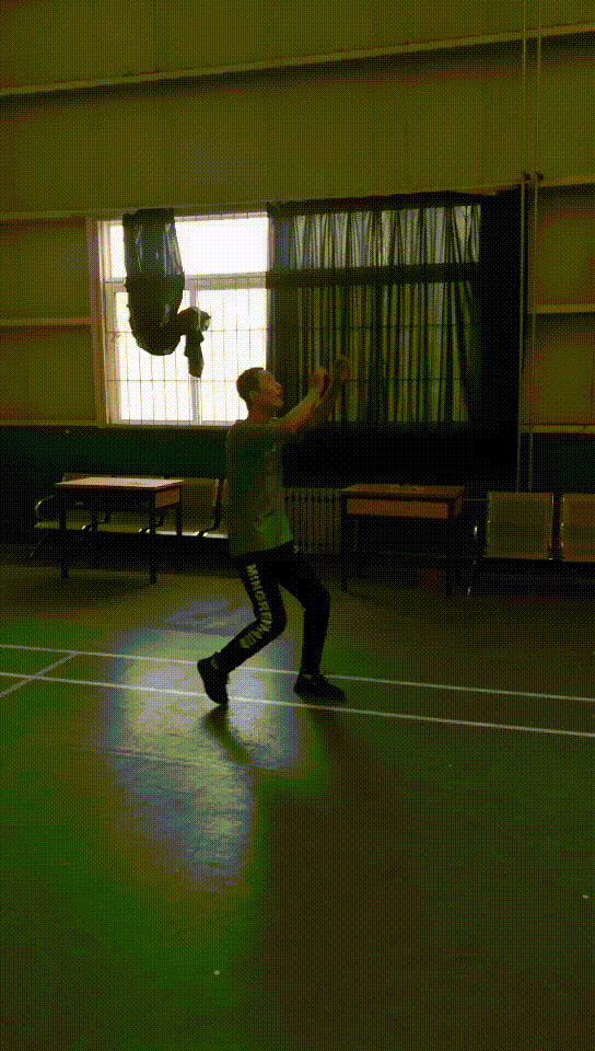拦网模拟练习动作要领:面对墙壁,双手于球两侧偏后的位置握住球,连续起跳并使球触碰墙壁。注意球不得脱手。
